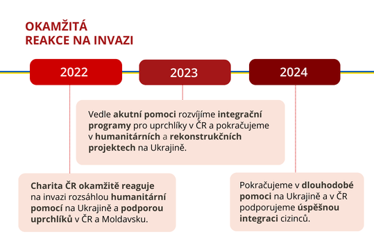 Charita Česká republika pomáhá na Ukrajině dlouhodobě, nejen od vypuknutí války v roce 2022. Už předtím jsme podporovali místní komunity, pomáhali s rozvojem sociálních služeb a poskytovali humanitární pomoc. Po začátku války jsme zintenzivnili naši činnost – dodávali jsme základní potraviny, hygienické potřeby, léky a finanční podporu lidem, kteří přišli o domov.